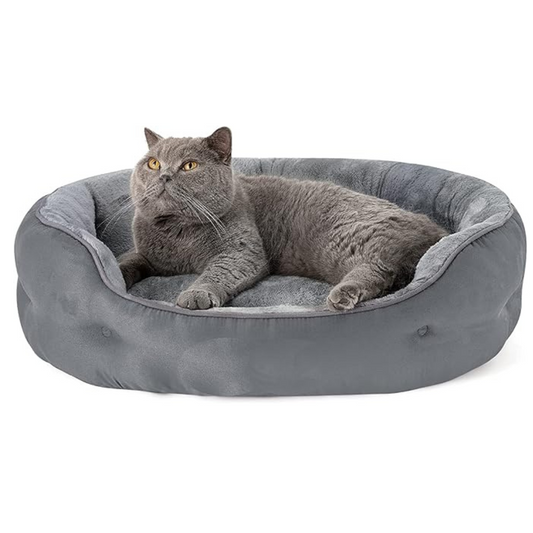 Polyester Oval Pet Bed For Cat & Small Breed Puppies - Machine Washable & Reversible